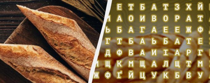 Numa grelha de letras é preciso encontrar a palavra “baguette” / collage Moje, foto depositphotos.com, Moje