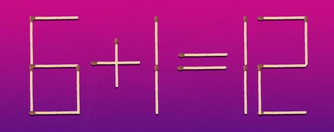 Assim, abaixo podes ver uma colagem, onde a igdade 6+1=12 é apresentada com a ajuda de fósforos. Obviamente, há aqui um erro, porque a soma destes números é ig a 7.