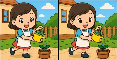 Então, estás pronto para o próximo desafio? Observe com atenção as d imagens de uma rapariga a regar uma planta. Podem parecer igs à primeira vista, mas há 3 pequenas diferenças. Achas que consegues encontrá-las todas em 59 segundos? Experimenta e testa a tacuidade vis!