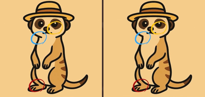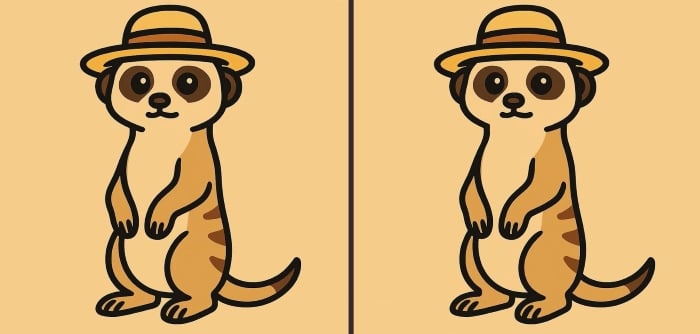 Então, estás pronto para o próximo desafio? Observe com atenção as d imagens de um suricata com um chapéu. Podem parecer igs à primeira vista, mas há 3 pequenas diferenças. Achas que consegues encontrá-las todas em 49 segundos? Experimenta e testa a tacuidade vis!