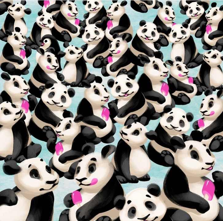 Não conseguiste encontrar o pinguim? A pista está no canto esquerdo da imagem. Escondido entre os pandas.