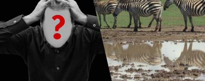 Existe uma tarefa deste tipo – tem de identificar um cão num campo em apenas 6 segundos. Todos vêem as zebras primeiro, mas nem todos conseguem ver o cão a tempo. É necessário reorientar a atenção para que não se fixe em objectos grandes. Tenta adivinhar onde o cão pode estar escondido.