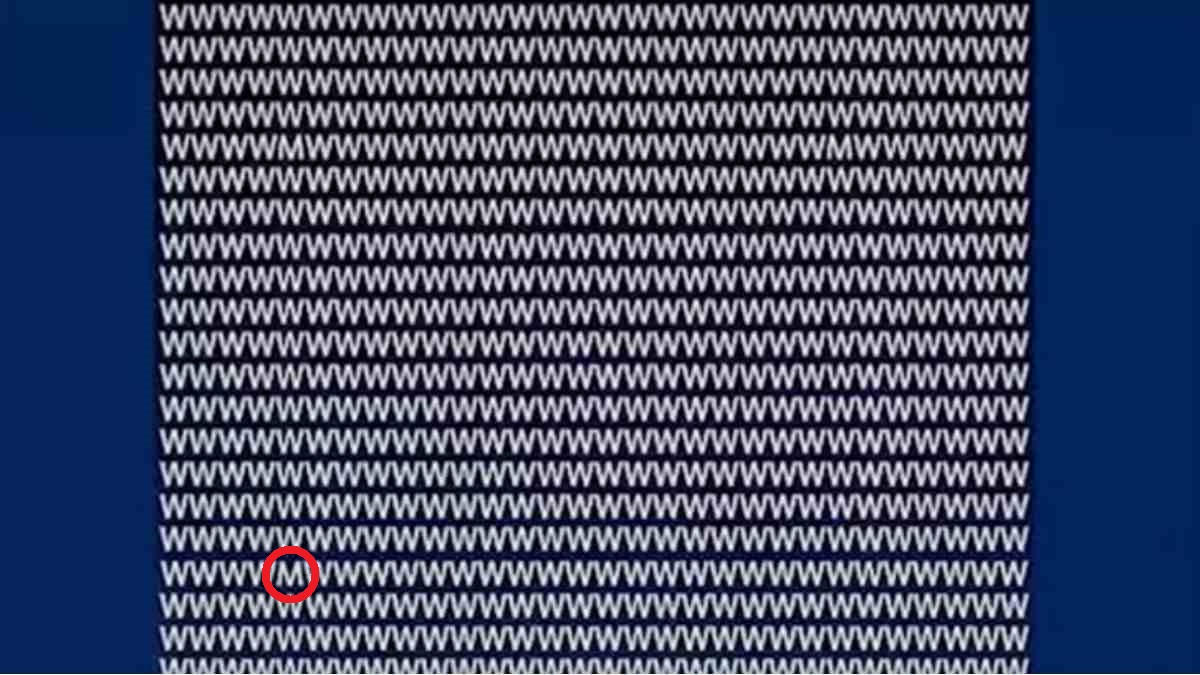 Na próxima ilusão de ótica, é necessário encontrar a letra M entre um grande número de letras W, escreve jagranjosh. Não é fácil perceber onde está escondida a letra que é diferente de todas as outras.