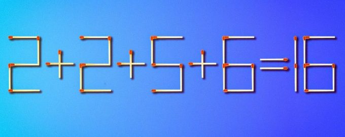 Abaixo pode ver uma imagem, na q estão dispostos fósforos com a igdade 2+2+5+6=16. Obviamente, existe um erro, porque a soma destes números deveria ser ig a 15.