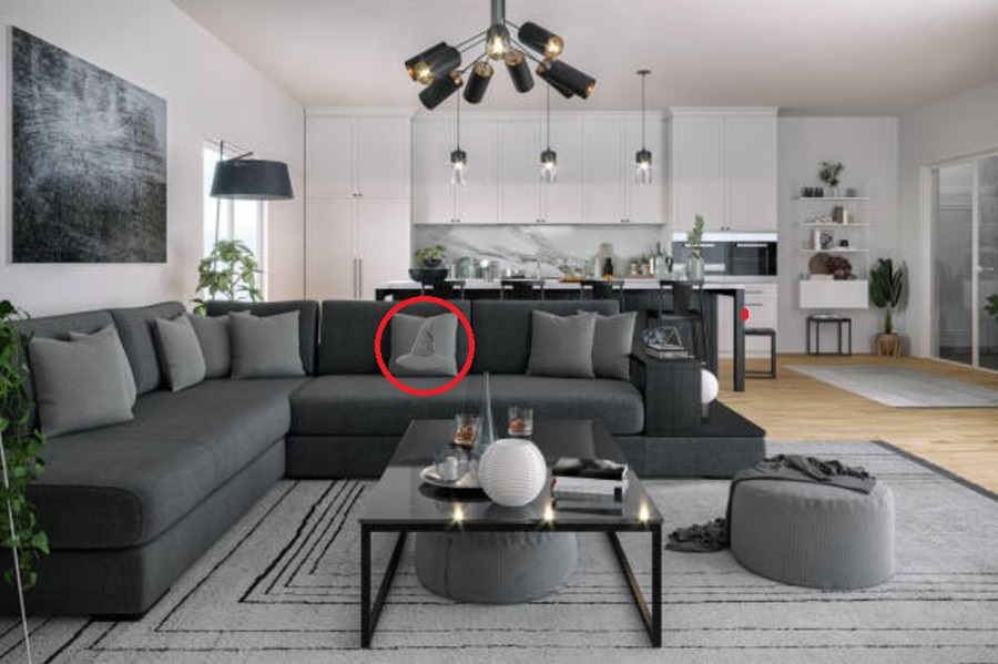 Necessidade de encontrar um chapéu numa sala em 12 segundos / Fresherslive Se não conseguires encontrar o chapéu, aqui vai uma dica – olha para as almofadas cinzentas no sofá. Reparaste em alguma coisa estranha?