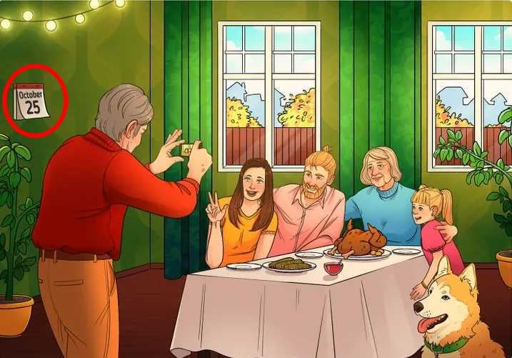 O erro é que a data no calendário é 25 de outubro e o Dia de Ação de Graças é em novembro.