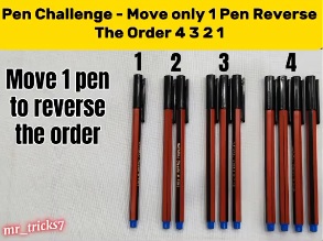 “Agora há 10 canetas dispostas 1, 2, 3 e 4 da esquerda para a direita. Então, temos de mover um botão e colocá-lo em qquer lugar e a ordem será invertida. Será 4, 3, 2 e 1. Consegues resolver isto? Demora o tempo que for preciso”, observou o autor do vídeo.